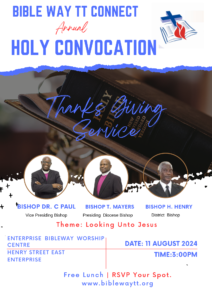 Bible Way Church of Our Lord Jesus Christ Worldwide Inc. of Trinidad and Tobago is a dynamic apostolic fellowship organization who offers Apostolic Covering, Evangelism, Education, Empowerment and Fellowship to persons, churches and organizations within the Trinidad and Tobago and internationally.